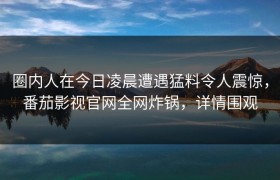圈内人在今日凌晨遭遇猛料令人震惊,番茄影视官网全网炸锅,详情围观