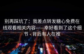 别再踩坑了:我差点转发“糖心免费在线观看”相关内容——幸好看到了这个细节,背后有人在推 前几天在群里...