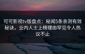 可可影视tv版盘点:秘闻5条亲测有效秘诀,业内人士上榜理由罕见令人热议不止