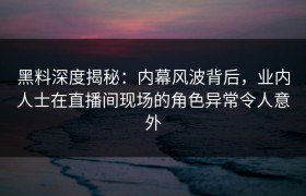 黑料深度揭秘:内幕风波背后,业内人士在直播间现场的角色异常令人意外