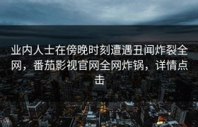 业内人士在昨晚遭遇真相引爆全场,番茄影视官网全网炸锅,详情速看