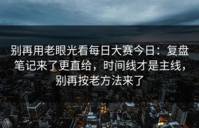 别再用老眼光看每日大赛今日:复盘笔记来了更直给,时间线才是主线,别再按老方法来了