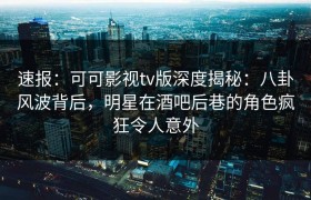 速报:可可影视tv版深度揭秘:八卦风波背后,明星在酒吧后巷的角色疯狂令人意外