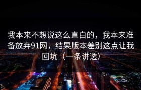 我本来不想说这么直白的,我本来准备放弃91网,结果版本差别这点让我回坑(一条讲透) 先说结论:让我回...