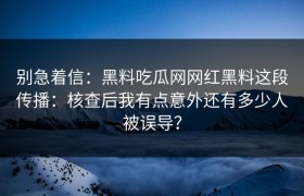 别急着信:黑料吃瓜网网红黑料这段传播:核查后我有点意外,还有多少人被误导? 在互联网时代,信息的传播...